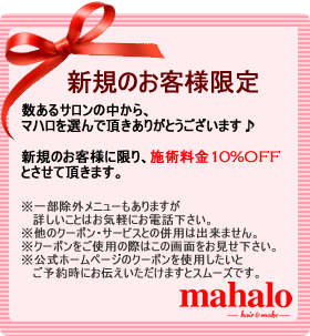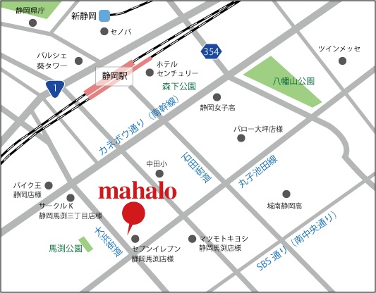 | mahalo(マハロ)-hair&make- 〒422-8063 静岡県静岡市駿河区馬渕 4丁目12-38 TEL:054-285-5094 |